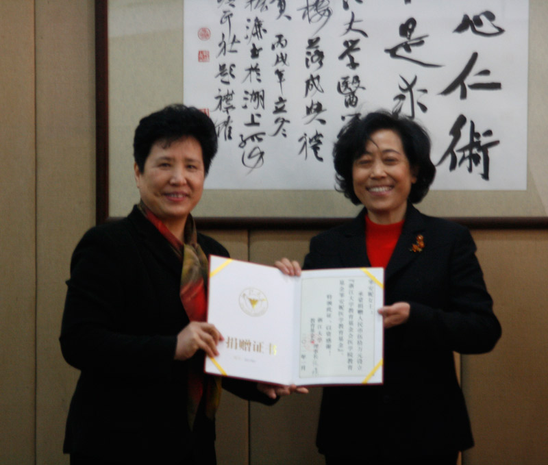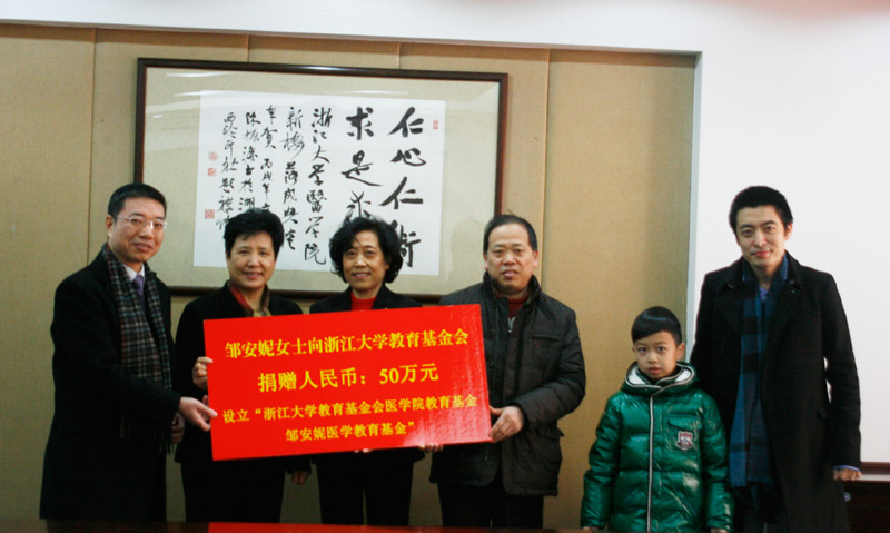 2011年1月6日上午11点,医学院综合楼502会议室举行了浙江大学教育基金会新年的第一次捐赠仪式——“邹安妮医学教育基金”捐赠仪式。校长助理、教育基金会秘书长张美凤出席仪式,医学部副主任黄河、副书记张小玲、附属第二医院内分泌科主任谷卫等参加了仪式。