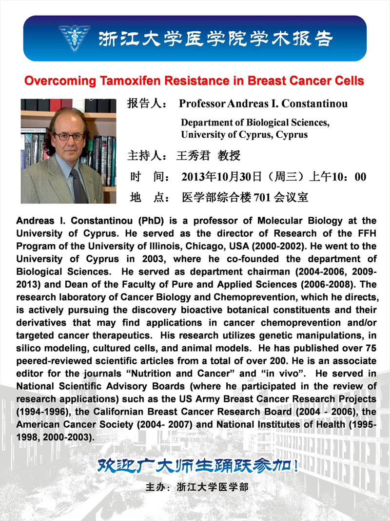 医学院系列学术报告第六十四场——Andreas I. Constantinou教授学术报告