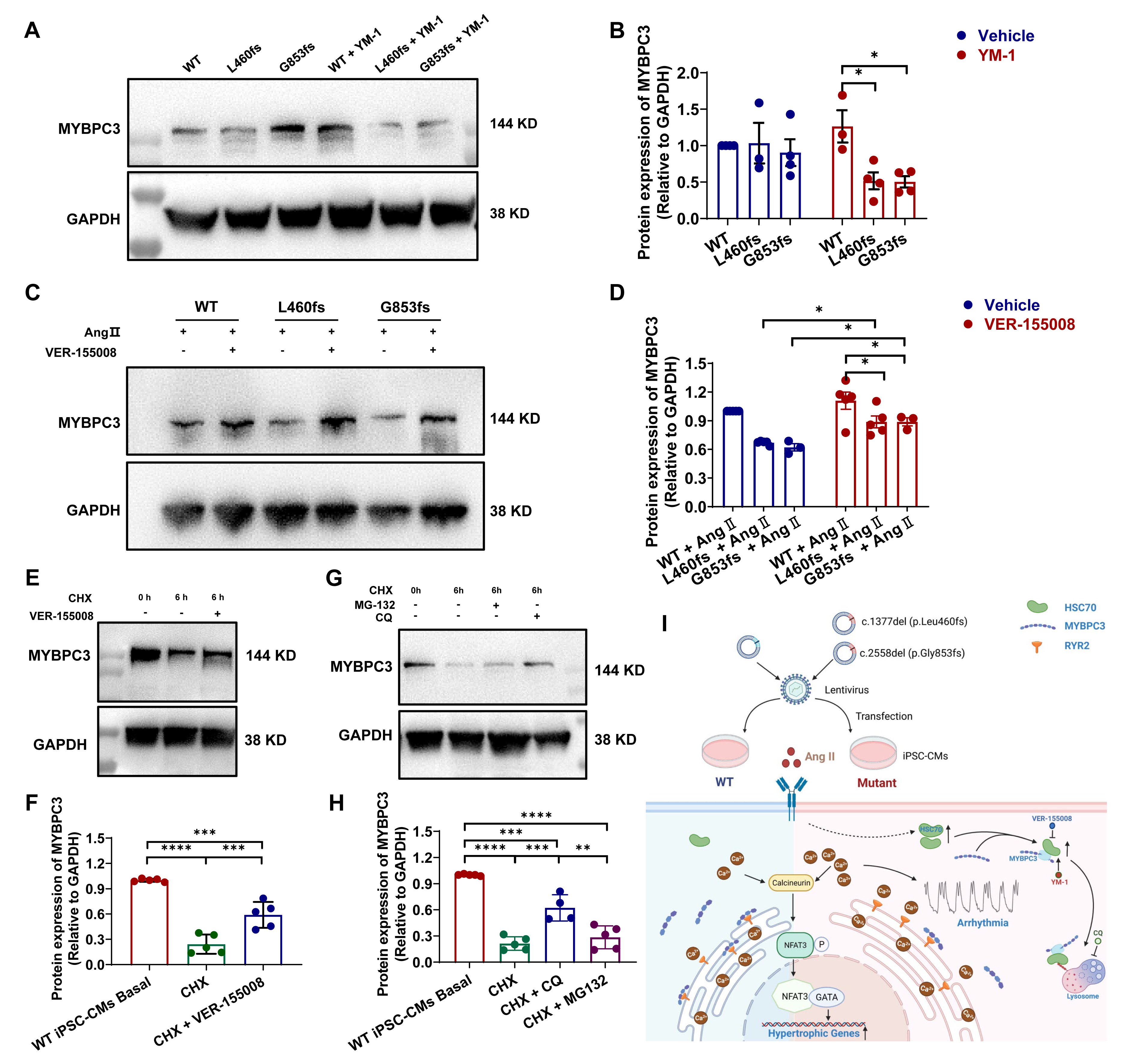 这项研究证实临床筛查中发现的MYBPC3基因突变(c.1377del; p.Leu460fs)可导致HCM的发生,为该新发突变的致病性提供了扎实的功能学依据。我们发现了MYBPC3作为心肌结构蛋白调节心肌收缩的同时也参与RYR2相关的钙稳态调控,而HSC70通过调控MYBPC3的蛋白周转在HCM发生中发挥关键作用。我们的研究提示了HSC70可以作为MYBPC3相关HCM的潜在治疗靶点。