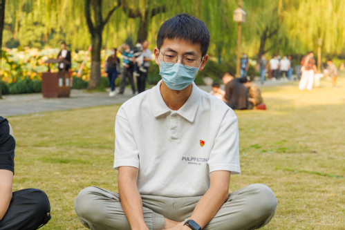 参观结束后,党支部成员围坐在孤山公园的草坪上,依次表达了自己参观过程中的触动和感想。张铭轩同志讲述了自己对中国共产党第二十次全国代表大会报告原文的理解。这次大会是在全党全国各族人民迈上全面建设社会主义现代化国家新征程、向第二个百年奋斗目标进军的关键时刻召开的一次十分重要的大会。他介绍了过去十年间党代领人民取得的伟大成就,并谈到自身对背后原因的理解——中国化、时代化的马克思主义行;他分析了全面建设现代化的具体内涵,并阐释了总体国家安全观的含义和重要性,并借二十大报告中对青年的寄语,号召大家积极向上,在不懈奋斗中实现个人价值,促进时代奋进。