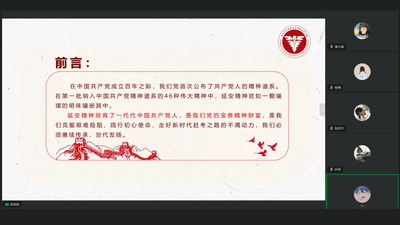 会议伊始,郏扬帆同志带领大家集中学习了延安精神。中国共产党成立百年之际,首次公布的第一批中国共产党精神谱系当中,延安精神无疑是一颗璀璨的明珠。郏扬帆同志从延安精神产生发展的历史条件、延安精神形成发展的历史过程和延安精神的主要内容等方面进行了细致的展示。作为新时代的青年党员,我们应当毫不动摇地坚持政治引领,做拥护“两个确立”的表率;应解放思想、实事求是,做改革创新的表率;更应不忘初心使命,做坚持人民至上的表率;也要强化责任担当,做攻坚克难、奋勇争先的表率。