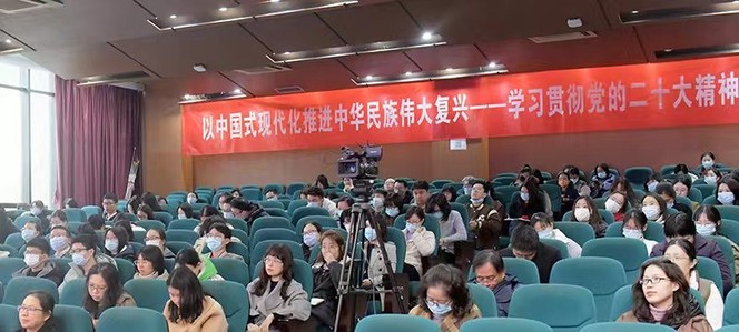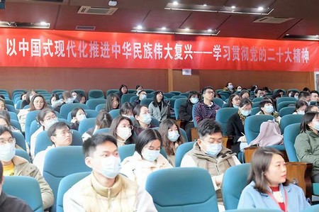 为深入学习贯彻习近平新时代中国特色社会主义思想和党的二十大精神,更加紧密地团结在以习近平同志为核心的党中央周围, 刻领会中国式现代化赋予高水平大学的使命和责任,2023317日上午,医学院党委举办深入学习贯彻党的二十大精神专题报告会,学习贯彻党的二十大精神浙江大学宣讲团成员、马克思主义学院副教授张立程作题为《以中国式现代化推进中华民族伟大复兴——学习贯彻党的二十大精神》的报告。报告会由医学院党委副书记陈周闻主持,学院全体党支部书记、支部委员、党员师生代表180余人现场参会,600余名党员线上收看。