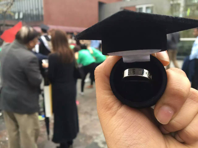 After taking the medical oath, all graduates were delivered degrees. The President and deans shook hands, set right fringe, awarded diploma, took photos with each graduate in the gown. At last, every graduate received a gift- a ring engraved with Zhejiang University logo, symbolizing the university’s care and best wishes for their bright future.