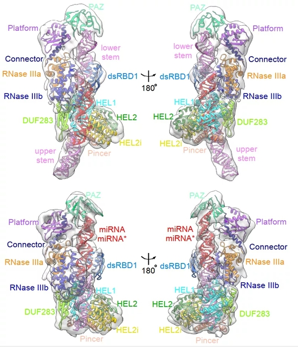 “These structures uncover the plasticity of the PAZ domain, which is critical for the recognition of both pri-miRNA and pre-miRNA, and suggest that the helicase module serves as an engine that transfers the substrate between two sequential cleavage events.” said Prof. FENG, “Our research explains the sequential cleavage activity of DCL1 and sheds light on the dicing state of human Dicer, as well.”