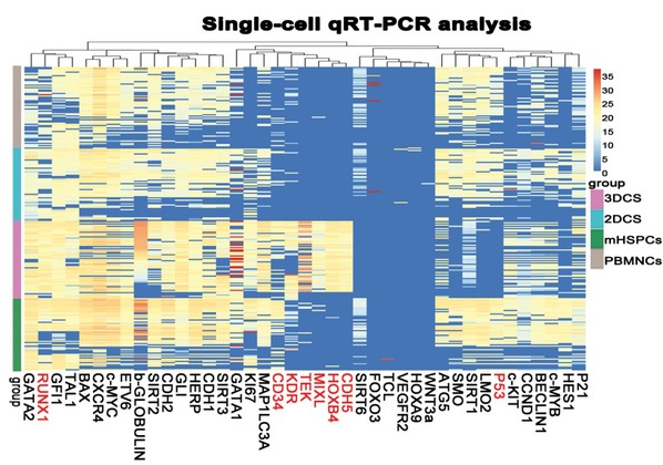 Fig. 3 High-throughput qPCR analysis verifified key hematopoietic transcription factor expression in cHSPCs with a heatmap.