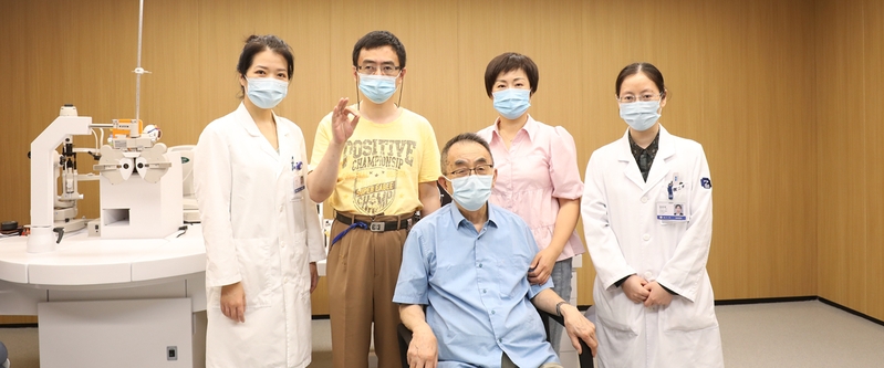 The visual acuity of Mr. JIN's right eye was immediately improved to 0.3 with the lens. Everyone at the site could tell that Mr. JIN was apparently happy about his restored eyesight.