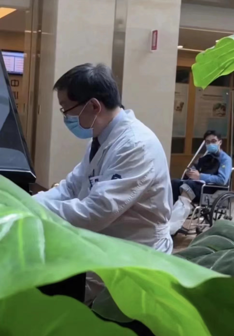 SAHZU Gynecologist Prof.ZHENG Wei playing piano for patients passing by