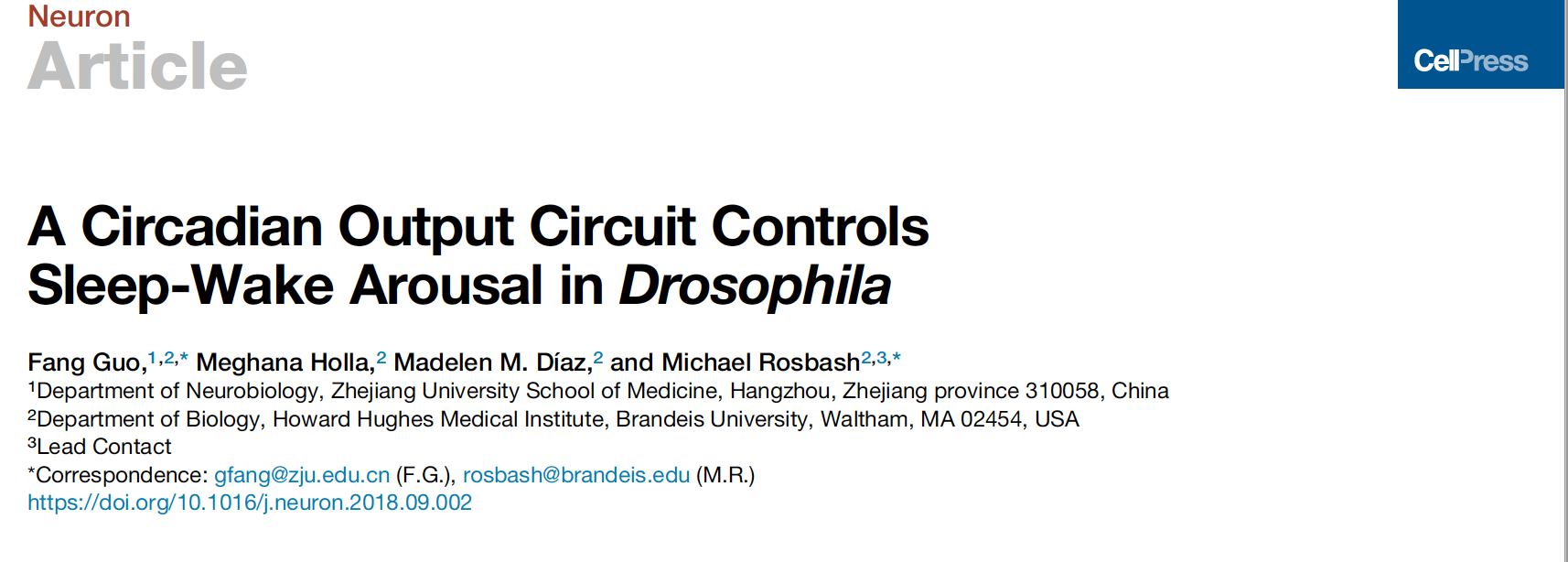 On September 27, 2018, a research paper entitled "A Circadian Output Circuit Controls Sleep-Wake Arousal in Drosophila" was publis...